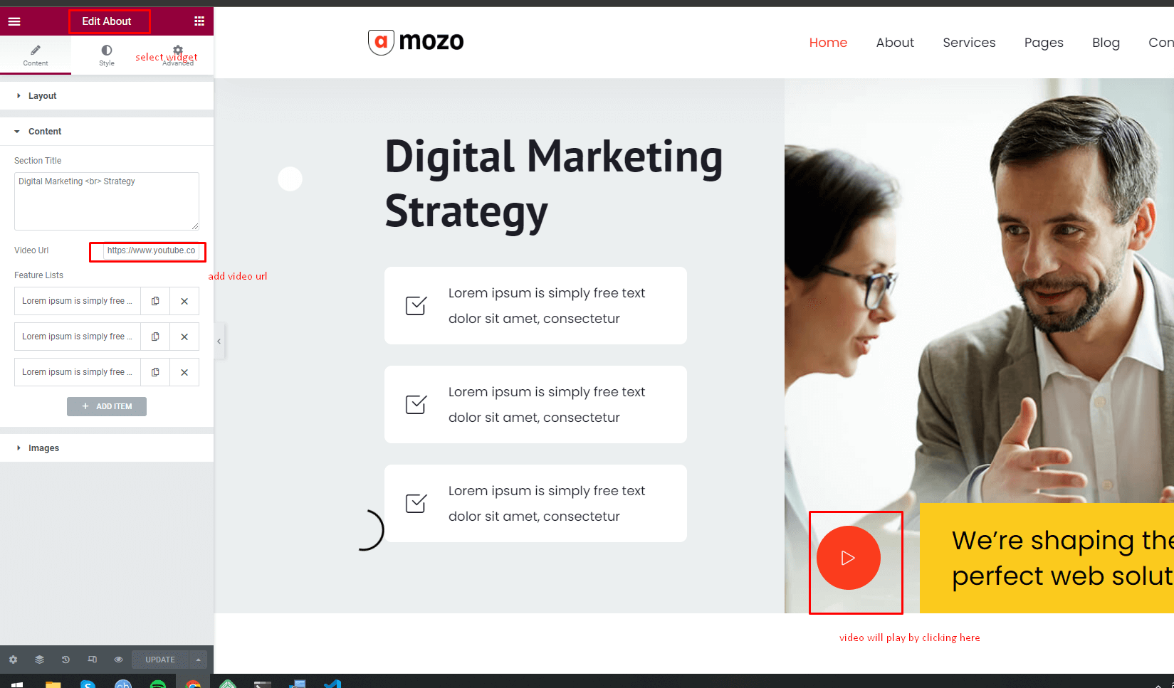 Basically we gave support of youtube video embeed on popup. For adding a video in popup you just have to copy the video url and paste it to our desier elementor widget see screenshot below.